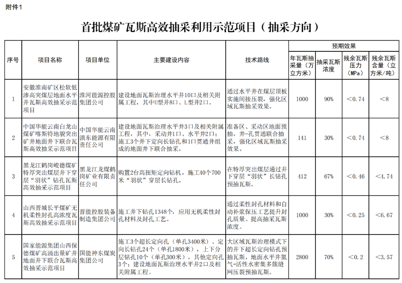 1.首批煤礦瓦斯高效抽采利用示范項(xiàng)目(抽采方向)
