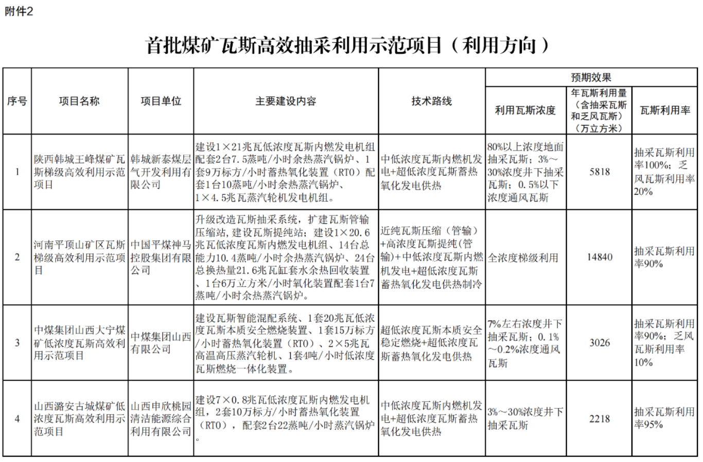 2.首批煤礦瓦斯高效抽采利用示范項(xiàng)目(利用方向)