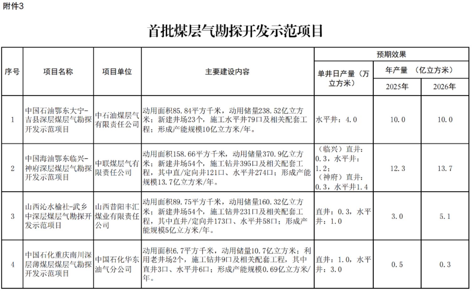 3.首批煤層氣勘探開(kāi)發(fā)示范項(xiàng)目