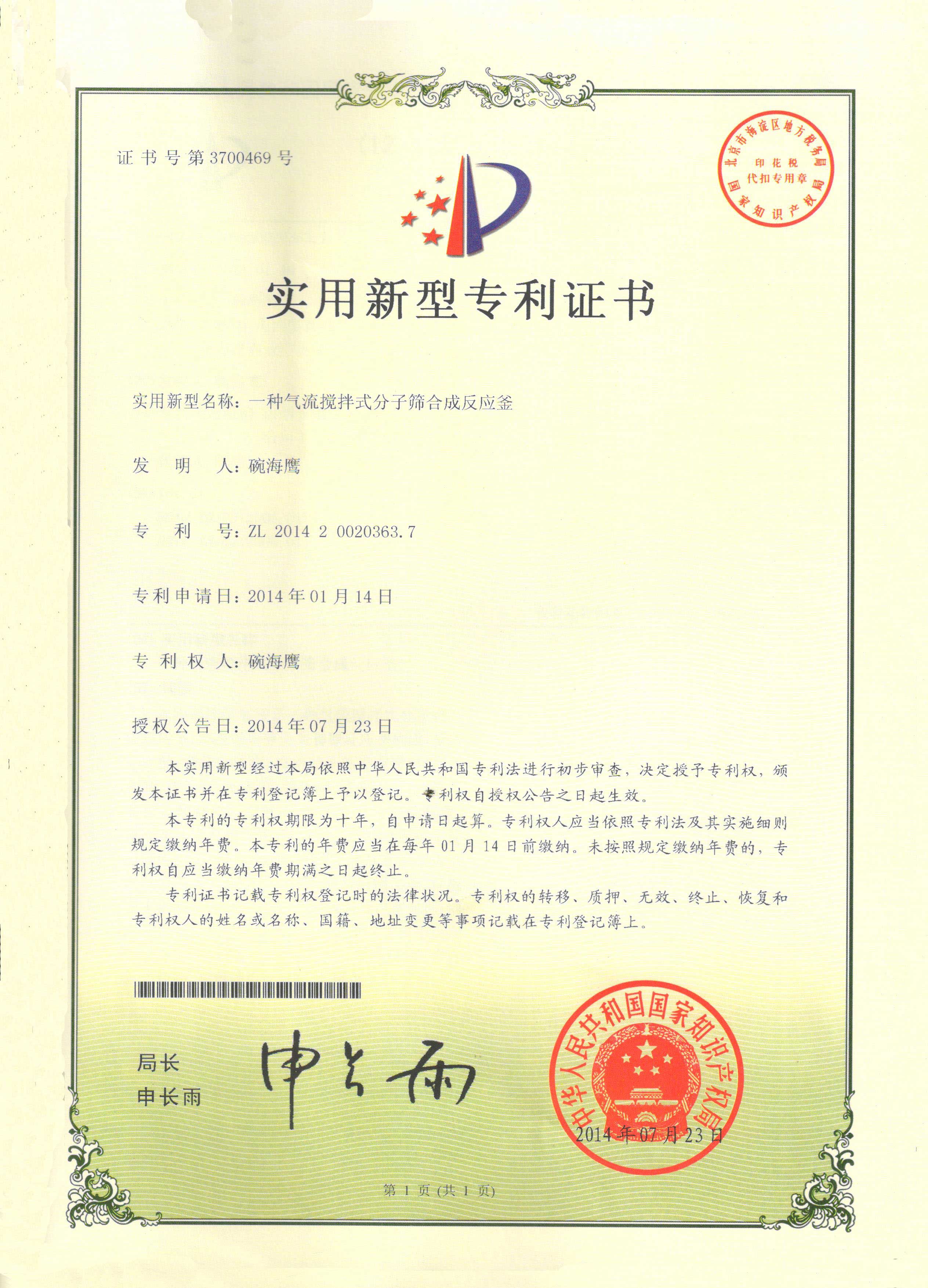一種氣流攪拌式分子篩合成反應釜